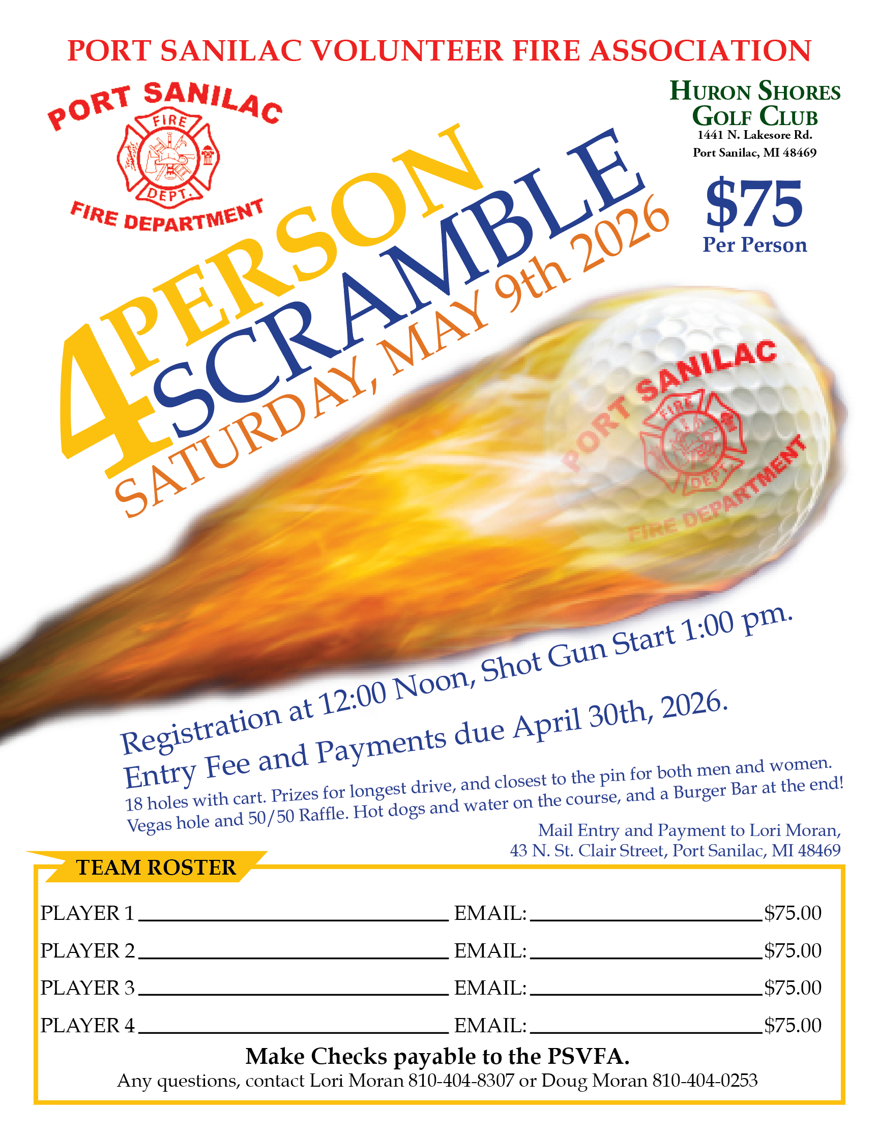 The annual Port Sanilac Volunteer Firefighter Association Golf Scramble is a great day of golf, community, and support for the local heroes who keep the community safe, helping raise funds for essential equipment, training, and community outreach.